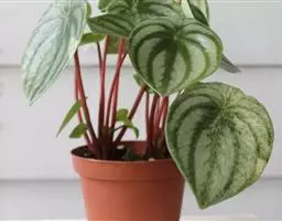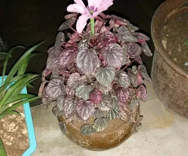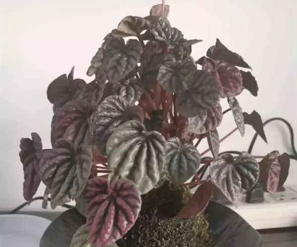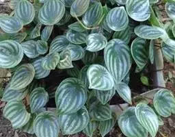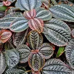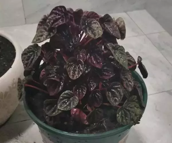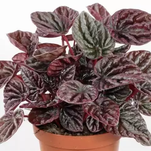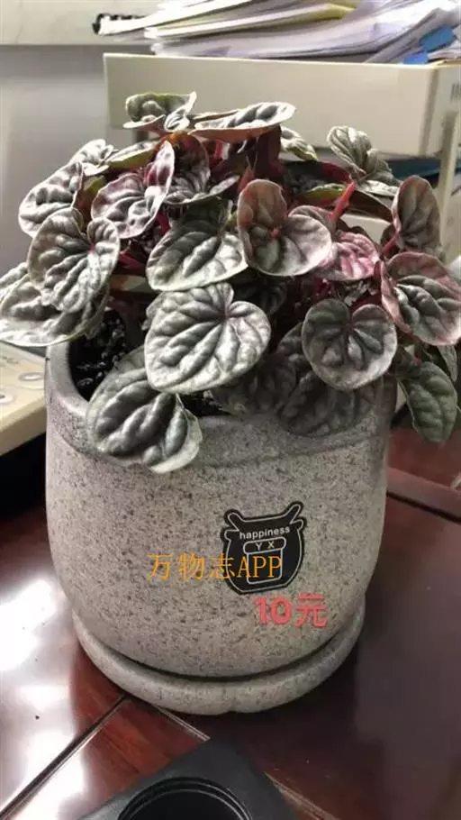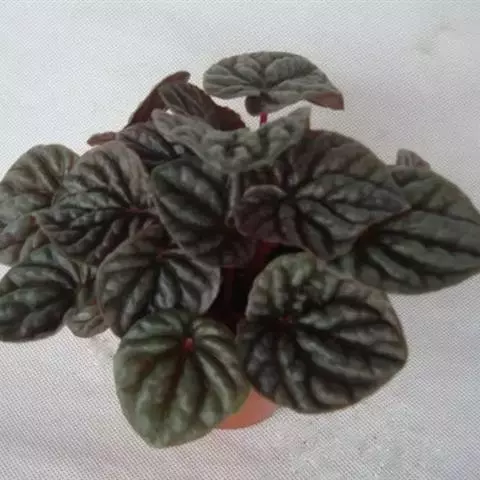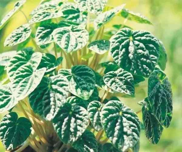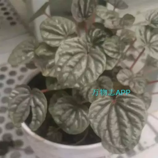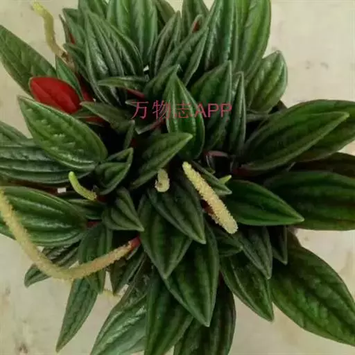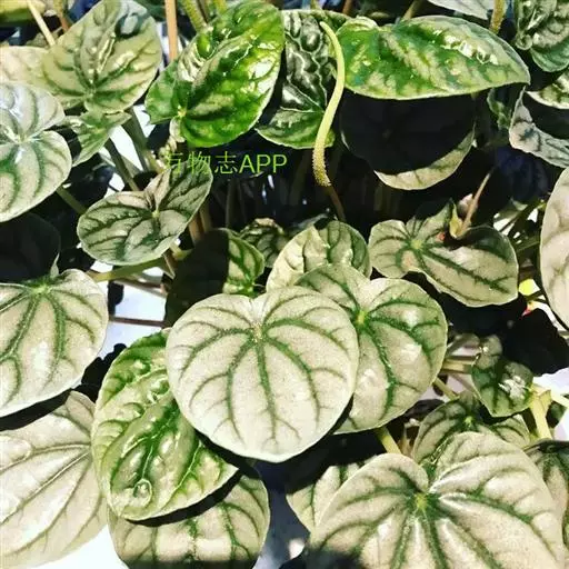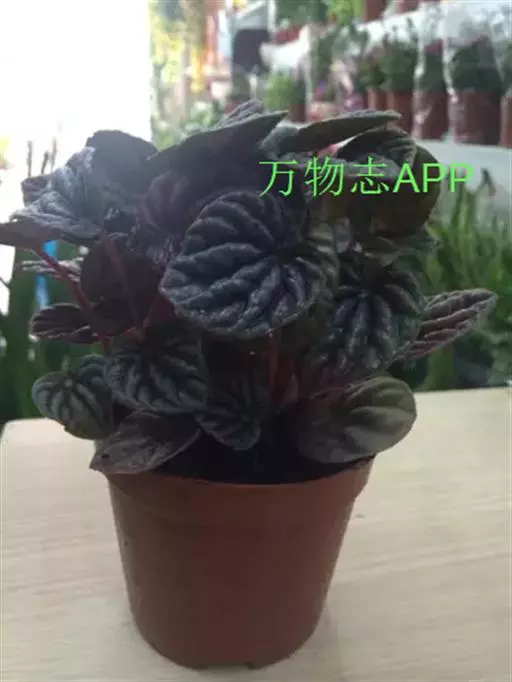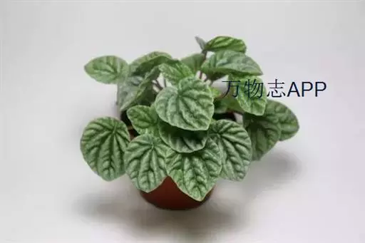 皱叶椒草 簇生型植株,茎短,叶圆心形丛生于短茎顶。叶柄长10~15 cm,株高约20 cm。叶面浓绿有光泽,叶背灰绿。主脉及第一侧脉向下凹陷,使叶面折皱不平。