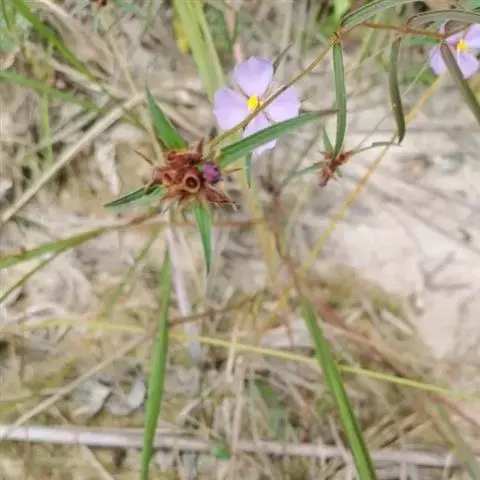 金锦香,别名:杯子草、小背笼、细花包、张天缸、昂天巷子、朝天罐子、细九尺、金香炉、装天甕、马松子、天香炉,拉丁文名:Osbeckia chinensis L.,是野牡丹科、金锦香属直立草本或亚灌木,高20-60厘米;茎四棱形,具紧贴的糙伏毛。叶片坚纸质,线形或线状披针形,极稀卵状披针形,顶端急尖,基部钝或几圆形,全缘,两面被糙伏毛,于背面隆起,细脉不明显;叶柄短或几无,被糙伏毛。头状花序,顶生,蒴果紫红色,卵状球形,4纵裂,宿存萼坛状,外面无毛或具少数刺毛突起。花期7-9月,果期9-11月。图片取自中国植物图库