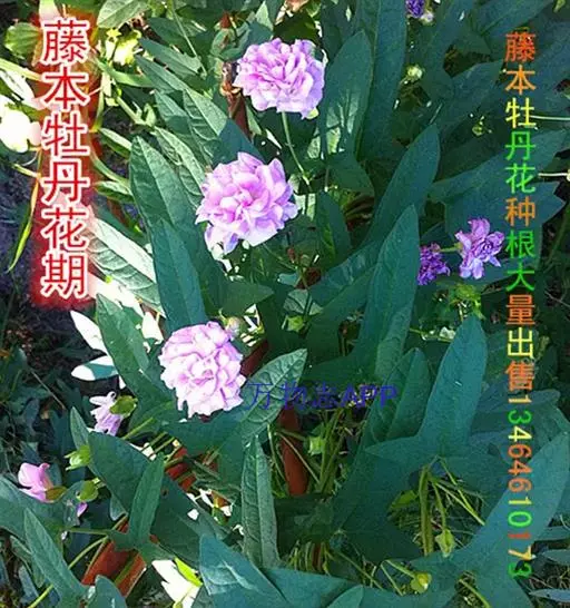 藤本牡丹花期长,一节脚芽生长成形的植株,藤蔓冠幅达一米多,盛花期日开花量近百朵,如色彩斑斓的挂毯,壮丽美观,微风拂动又如群蝶翩飞,是花篱、花棚、花廊的好制材,还可以地爬式彩花通道和彩花地坪,是多种形式绿化的佳品。