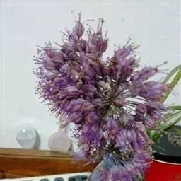 花葶圆柱状,高30-70厘米,1/4~1/3被叶鞘;总苞2裂,比花序短;伞形花序半球状至球状,具多而密集的花,或间具珠芽或有时全为珠芽;小花梗近等长,比花被片长3~5倍,基部具小苞片;珠芽暗紫色,基部亦具小苞片;花淡紫色或淡红色;花被片矩圆状卵形至矩圆状披针形,长4~5.5毫米,宽1.2~2毫米,内轮的常较狭;花丝等长,比花被片稍长直到比其长1/3,在基部合、生并与花被片贴生,分离部分的基部呈狭三角形扩大,向上收狭成锥形,内轮的基部约为外轮基部宽的1.5倍;子房近球状,腹缝线基部具有帘的凹陷蜜穴;花柱伸出花被外。花果期5~7月。