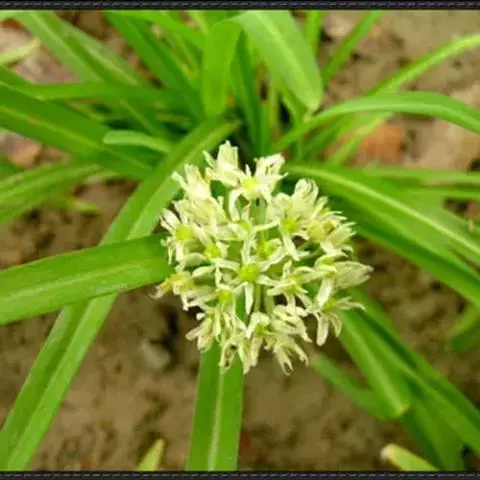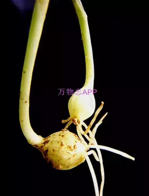 鳞茎近球状,粗0.7~1.5(-2)厘米,基部常具小鳞茎(因其易脱落故在标本上不常见);鳞茎外皮带黑色,纸质或膜质,不破裂,但在标本上多因脱落而仅存白色的内皮。叶3~5枚,半圆柱状,或因背部纵棱发达而为三棱状半圆柱形,中空,上面具沟槽,比花葶短。