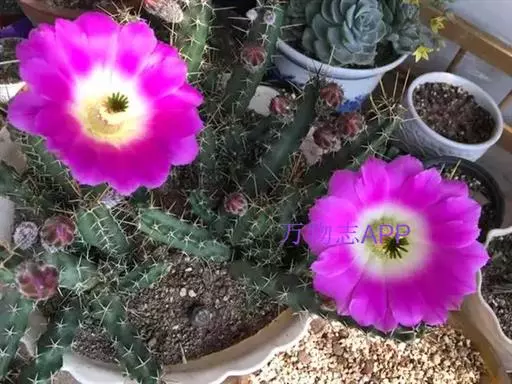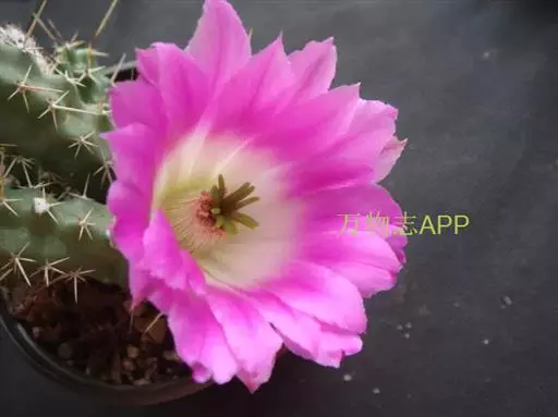 美花角植株有点大,有5-6棱,球体绿色,长柱型,基本五角型,刺生疣凸角尖上,有黄白色刺4-5枚。春、夏季节开花。美花角花开粉色或玫红色,叶片有绢质感,花有雌蕊1枚,雄蕊多枚,黄色。异花授粉。美花角配土比较简单,珍珠岩混合了泥炭,加了蛭石和煤渣,比例随意,透气为主,土表铺设了浮石。美花角这个品种还是比较耐暴晒的,生长期干透给水,成株尽量少点水,不然就容易徒长的很长哦,群生美花角长的都比较高,光照不够也容易长高。