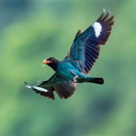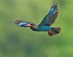 三宝鸟,是佛法僧目佛法僧科三宝鸟属中小型攀禽。成鸟通体为富有光泽的墨蓝绿色,…