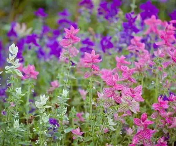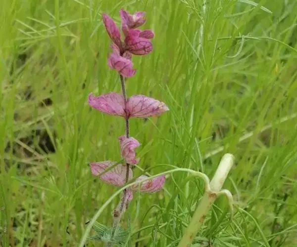 彩苞鼠尾草(Salvia viridis)为唇形科、鼠尾草属一年生草本,株型直立,叶对生长椭圆形,色灰绿,叶表有凹凸状织纹,有香味,及具观尝性与食用性;花朵有纸质苞片环绕,粉红至浅蓝花有深色条纹;花期夏季。