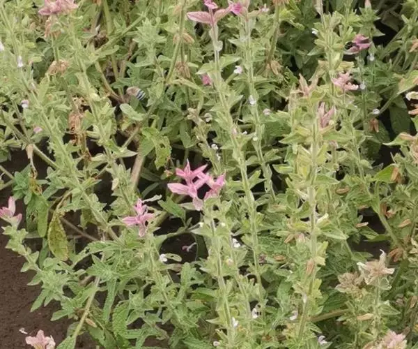 植株呈丛生状,叶对生长椭圆形,色灰绿,叶表有凹凸状织纹,有香味,及具观尝性与食用性,生长强健,耐病虫害,本品种属鼠尾草的稀有品种。