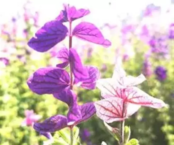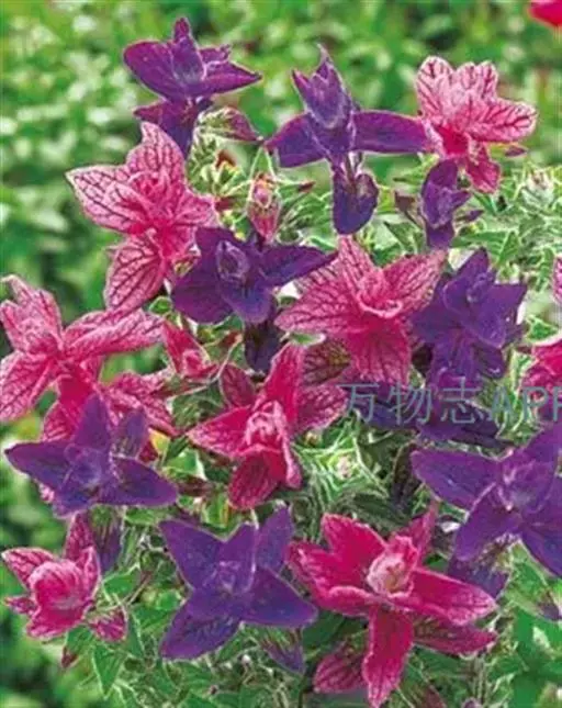 彩苞鼠尾草为唇形科、鼠尾草属一年生草本,株型直立,叶对生长椭圆形,色灰绿,叶表有凹凸状织纹,有香味,…