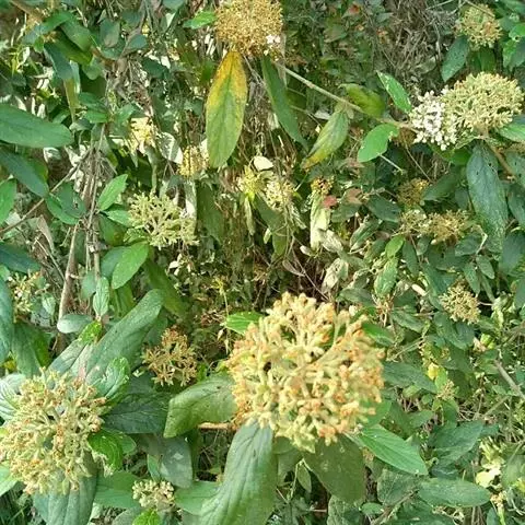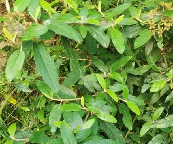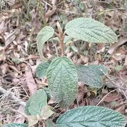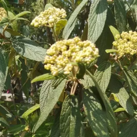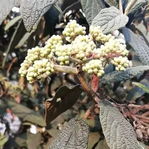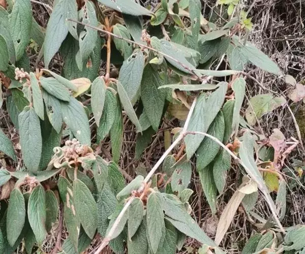 皱叶英蒾 常绿灌木或小乔木,高达4米;幼枝、芽、叶下面、叶柄及花序均被由黄白色、黄褐色或红褐色簇状毛组成的厚绒毛,毛的分枝长0.3-0.7毫米;当年小枝粗壮,稍有棱角,二年生小枝红褐色或灰黑色,无毛,散生圆形小皮孔,老枝黑褐色。