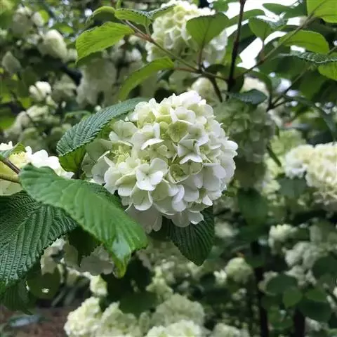 绣球荚蒾,五福花科荚蒾属落叶灌木,高可达3米,树冠球形;幼枝有垢屑状星状毛,老枝粗壮,具皮孔,…