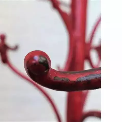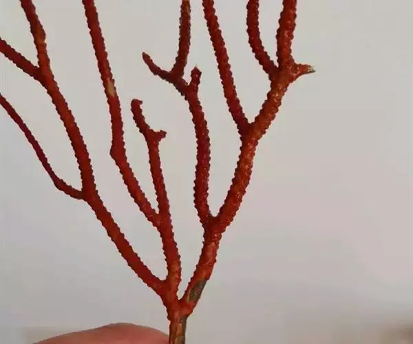 红珊瑚为水螅型的群体动物,群体生活的珊瑚个体。红珊瑚的骨骼呈树枝状复体。每个分枝中心都有一根角质的骨骼中轴,软体包围在骨骼外面,许多珊瑚虫围绕着轴生长。这些柱状轴高达20厘米,直径3厘米。红珊瑚虫的软体有中胶层和内胚层、外胚层二层细胞。红珊瑚虫通过外胚层分泌骨骼——红珊瑚。刚性菌落在基柱上向四面八方生长,生成一种毛茸茸的形状。枝干上分布着半球形的短花萼,基座扩展的息肉是白色透明的,有八只触角良好的小羽片。一旦珊瑚被触碰,息肉在盏内收回。柱形枝上具钙质骨针、骨片,径向对称,疣短棒状。颜色通常为暗红色。
