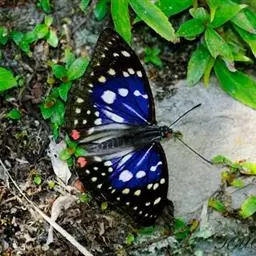 大紫蛱蝶为大型蝶种,翅展约86~110mm。翅紫黑色,有白色斑点点缀其中,雄蝶的翅具强烈紫色虹彩,…