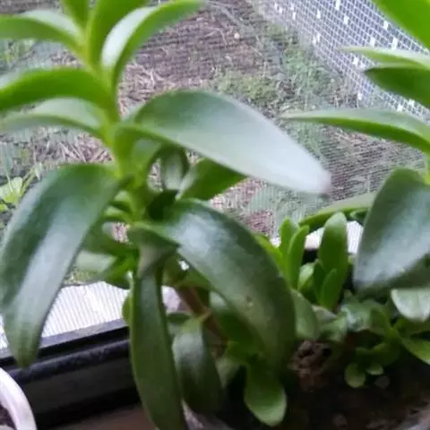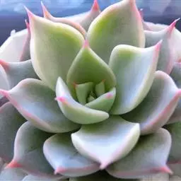 扁平,倒披针形或倒卵形,形状介于椭圆形和长方形之间。长1.5—3.5厘米,宽0.5—1.2厘米。长在植株的基部,向外延伸。有绒毛。朝上一面平坦或微凹,朝下一面凸起。边缘尖锐,有极微小的纤毛。基部呈楔形。有叶尖。一般呈棕红色或深紫红色,阳光充足、温差大的环境下呈现较鲜艳的红色,少光环境下呈绿色。