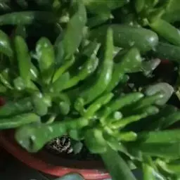 红数珠是景天科青锁龙属植物,叶片对生,叶片长圆型,叶片肥厚。叶片表面有不规则凸起的白色颗粒,…