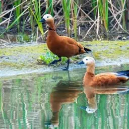 红胸秋沙鸭属中等食鱼鸭类,体长53厘米。嘴细长而带钩,捕食鱼类。丝质冠羽长而尖。雄鸟黑白色,两侧多…