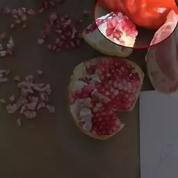 成熟后变成大型而多室、多子的浆果,每室内有多数子粒;外种皮肉质,呈鲜红、淡红或白色,多汁,甜而带酸,即为可食用的部分;内种皮为角质,也有退化变软的,即软籽石榴。