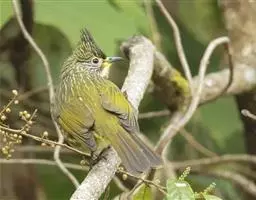 纵纹绿鹎,是鹎科鹎属的一种动物,是体型中等大小鸟类,体长20-24厘米。头绿褐色具明显的冠羽,…