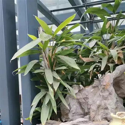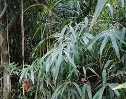 凤尾竹 Raeusch. ex Schult. ’Fernleaf’ R. A. Young)是禾本科,簕竹属孝顺竹的变种。植株较高大,杆高可达6米,竿中空,小枝稍下弯,下部挺直,绿色;竿壁稍薄;节处稍隆起,无毛;叶鞘无毛,纵肋稍隆起,背部具脊;叶耳肾形,边缘具波曲状细长繸毛;叶舌圆拱形,叶片线形,上表面无毛,下表面粉绿而密被短柔毛,小穗含小花,中间小花为两性;外稃两侧稍不对称,长圆状披针形,先端急尖;内稃线形,脊上被短纤毛,花药紫色,子房卵球形,羽毛状。成熟颖果未见。原产中国,华东、华南、西南以至台湾、香港均有栽培。凤尾竹喜温暖、湿润和阳光充足的环境,耐寒。宜土层深厚、肥沃、疏松的微酸性壤土。该种观赏价值较高,宜作庭院丛栽,也可作盆景植物。全草或根入药,味淡、微苦,性寒,有清热利湿、凉血止血、消肿解毒功效,可治痢疾、泄泻等多种病症。凤尾
