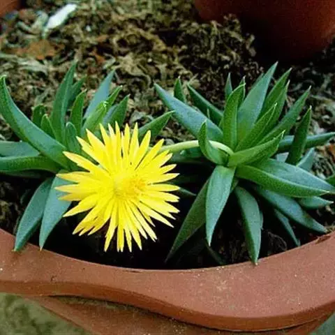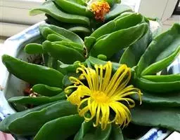 照波,番杏科多肉植物、 此种生长较快,栽培容易,细长的浓绿色叶3厘米左右,开黄色花。…