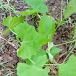 节瓜 一年生蔓生或架生草本;茎被黄褐色硬毛及长柔毛,有棱沟。叶柄粗壮,长5-20厘米,被黄褐色的硬毛和长柔毛;叶片肾状近圆形,宽15-30厘米,5-7浅裂或有时中裂,裂片宽三角形或卵形,先端急尖,边缘有小齿,基部深心形,弯缺张开,近圆形,深、宽均为2.5-3.5厘米,表面深绿色,稍粗糙,有疏柔毛,老后渐脱落,变近无毛;背面粗糙,灰白色,有粗硬毛,叶脉在叶背面稍隆起,密被毛。卷须2-3歧,被粗硬毛和长柔毛。
