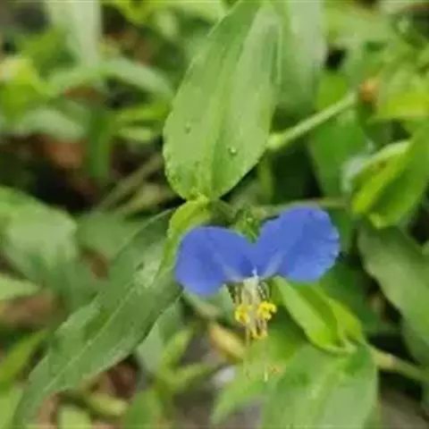 蓝色鸭跖草又叫野蝴蝶花、半日莲、碧竹子、兰花草、竹叶菜、鸡冠菜、鸭抓菜、淡竹叶花等