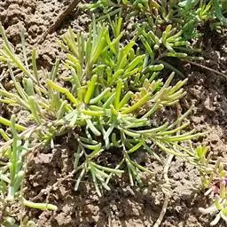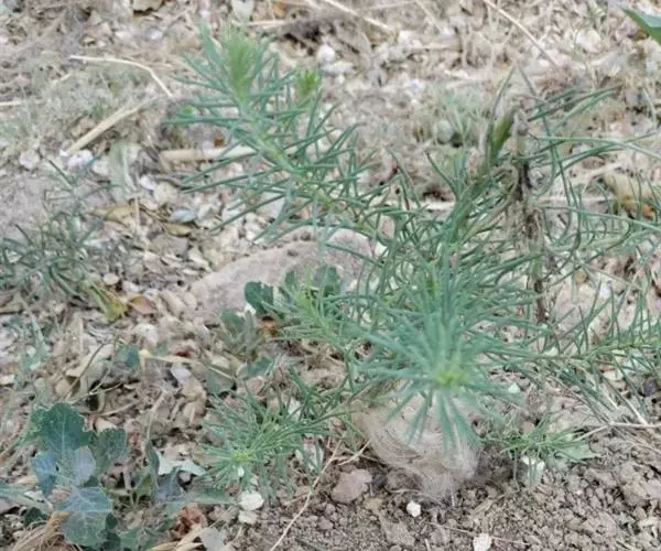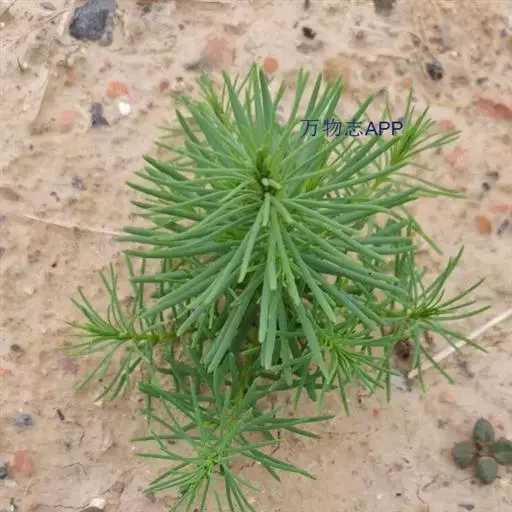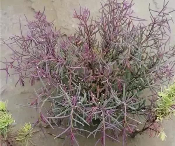 一年生草本,高可达1米。茎直立,粗壮,圆柱状,浅绿色,有条棱,上部多分枝;枝细长,上升或斜伸。叶丝状条形,半圆柱状,通常长1.5-5厘米,宽约1.5毫米,灰绿色,光滑无毛,稍向上弯曲,先端微尖,基部稍收缩。