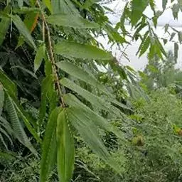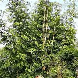 乔木状竹类植物。地下茎合轴型。 竿近直立,高6-12米(原记载为1.5-3米),直径(3)6-8厘米,梢端作弓形弯曲或下 吊丝竹 垂;节间圆筒形,长30-45厘米,无毛,幼时密被白粉,尤以被箨鞘掩盖部分为甚;竿壁厚5-5.6毫米;竿环平坦;箨环稍隆起,常留有残存的箨鞘基部;分枝习性高,枝多条,束生于每节,主枝不很显著。