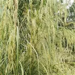 吊丝竹 花枝细长,无叶,节间长2-3.5厘米,一侧稍扁或具宽的纵沟槽,被有锈色柔毛,尤以扁平或沟槽处为密集,每节着生假小穗5-10枚,小穗体扁,卵状长圆形,长约1.2厘米,宽4-7毫米,鲜时呈紫茄色,干后变为棕黄色,含小花4或5朵,先端张开;颖通常2片,宽卵形,长6毫米,宽4毫米,无毛或近于无毛,边缘生纤毛;外稃纸质或稍变硬,广卵形或心形,长9-11毫米,宽5-6毫米,近于无毛(上部小花者疏生微毛),先端尖,具小尖头及不明显的多条纵脉,边缘具纤毛;内稃质薄,窄披针形,长6-8毫米,宽2毫米,背面疏生细毛,边缘及两脊上均具纤毛,脊间有不明显的3脉,先端锐尖;花药黄色;长5-6毫米,药隔向上伸出成为具毛的小尖头,在小花成熟时,整个花药能伸出花外;雌蕊除基部外遍体生细绒毛,子房卵形,花柱细长,柱头单一,常卷曲,具帚刷状毛茸。