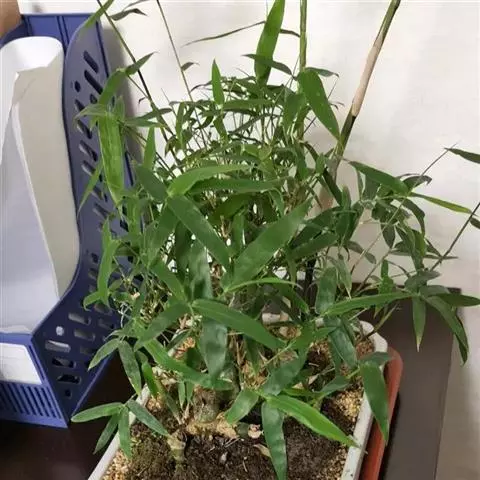 将分切好的种苗直立栽人口径约10厘米,高度约7厘米的小瓦盆中,素土填实。然后按15厘米x20厘米的株行距,连同小盆一起,栽植在苗畦中,使盆面与土面平齐,然后灌水,栽好之后,由于种苗根部被小盆匡束住,不能正常生长。于夏、秋二季抽生出的竹秆即长得极度矮小,高不盈尺,适于盆栽观赏的小型化竹株;第二年春天,就可做盆景用竹了。