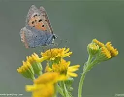 橙灰蝶Lycaena dispar Hauorth,鳞翅目、灰蝶科。这类蝴蝶雌雄异型,雄蝶前翅翅面…