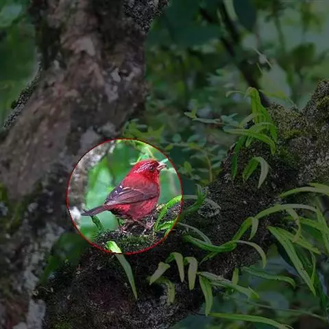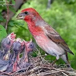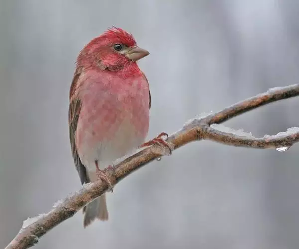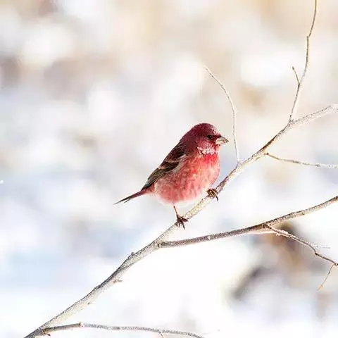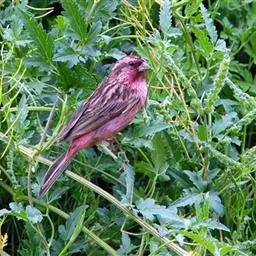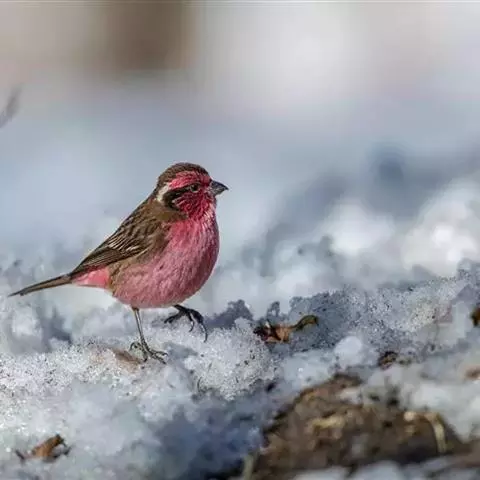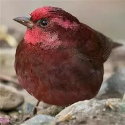 藏朱雀:全长约17-18厘米。雄鸟头部深红色具光辉,喉部暗红色具白色点斑;背部灰白色,各羽具玫瑰红…