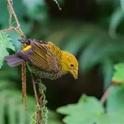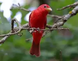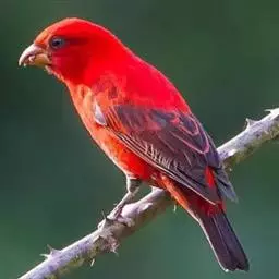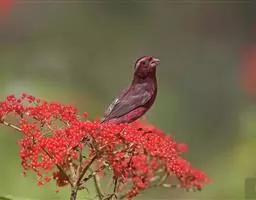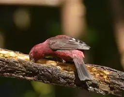 酒红朱雀小型鸟类,体长13~15厘米。雄鸟通体深红色,头部深朱红或棕红色,下背和腰玫瑰红色,…