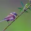 红眉朱雀:体长15厘米,是一种中等体型的朱雀。上体褐色斑驳,眉纹、脸颊、胸及腰淡紫粉,臀近白。…