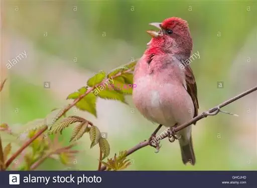 普通朱雀(学名:Carpodacus erythrinus):是鸟纲、雀科的小型鸟类,体长13-16厘米。雄鸟头顶、腰、喉、胸红色或洋红色,背、肩褐色或橄榄褐色,羽缘沾红色,两翅和尾黑褐色,羽缘沾红色。雌鸟上体灰褐或橄榄揭色、具暗色纵纹,下体白色或皮黄白色、亦具黑褐色纵纹。
