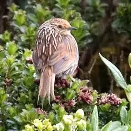 雌鸟上体灰褐或橄榄褐色,头顶至背具暗褐色纵纹,两翅和尾黑褐色,外翈具窄的橄榄黄色羽缘,中覆羽和大覆羽端斑近白色。下体灰白或皮黄白色,颏、喉、胸和两胁具暗褐色纵纹。