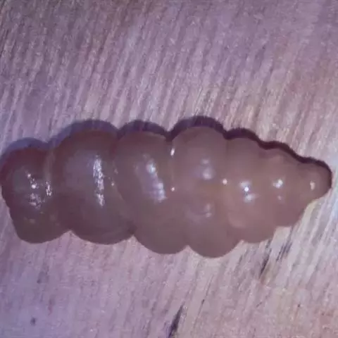 斗米虫为锈色粒肩天牛的幼虫,锈色粒肩天牛主要危害槐树Sophora japonica,…