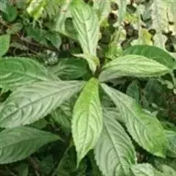 叶互生,在下部有叶柄,在上部无叶柄,叶片卵形或卵圆形,长2-7厘米,宽1.5-5厘米,顶部钝,基圆、截平或心形,边缘波形或钝圆齿,上表面灰绿色,下表面淡绿色,侧脉6-7对。