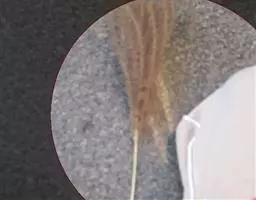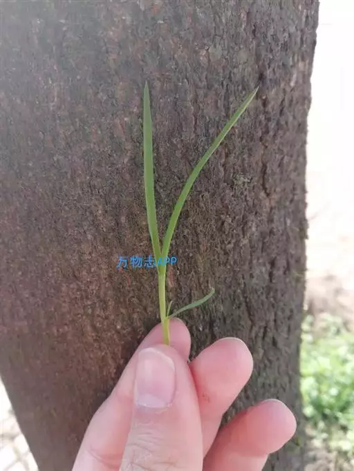 总状花序2枚对连,长2-6厘米;穗轴宽1.5-2毫米;小穗倒卵状长圆形,长约3毫米,顶端尖,疏生微柔毛;第一颖退化或微小;第二颖贴生柔毛,具明显的中脉;第一外稃具3-5脉,通常无毛,顶端尖;第二外稃草质,等长于小穗,黄绿色,顶端尖,被毛。染色体2n=40(Brown,1948),48(Burton, 1942),60(Gupta et al.,1974)。花果期5-9月。