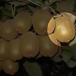 黄金果猕猴桃 黄金果是猕猴桃品种之一,原产地新西兰,因成熟后果肉为黄色而得名。黄金果为二倍体,果实为长卵圆形,果喙端尖、具喙,果实中等大小,单果重80~140g,若使用生物促进剂BenifitPZ,大果比例增加。软熟果肉黄色至金黄色,味甜具芳香,肉质细嫩,风味浓郁,可溶性固形物含量15%~19%,干物质含量17%~20%,果实硬度1.2~1.4kg/cm。