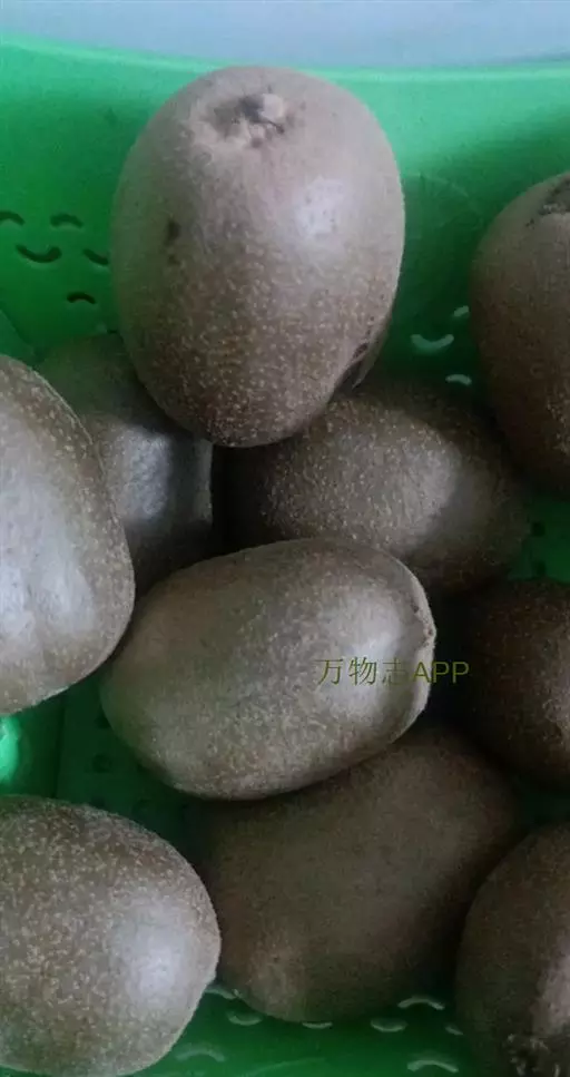 果形一般为椭圆状,早期外观呈绿褐色,成熟后呈红褐色,表皮覆盖浓密绒毛,果肉可食用,其内是呈亮绿色的果肉和一排黑色或者红色的种子。因猕猴喜食,故名猕猴桃;亦有说法是因为果皮覆毛,貌似猕猴而得名,是一种品质鲜嫩,营养丰富,风味鲜美的水果。