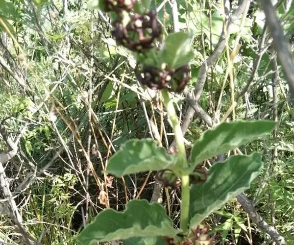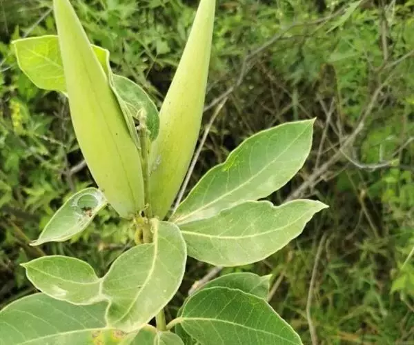直立白薇:又名:三百根、牛角胆草、苦胆草、羊奶子,多年生草本。植物体具白色乳汁。根茎短,簇生多数细长的条状根。茎直立,叶对生;具短柄;叶脉在下面稍隆起。伞形花序腋生,小花梗短,花黑紫色。