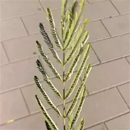 南洋楹(学名;Albizia falcataria (Linn.) Fosberg.),又名“仁仁树”“仁人木”,是豆科,合欢属常绿大乔木。高达45m,胸径100cm以上,树干通直。树皮灰青至灰褐色,不裂。小枝具棱,淡绿色,皮孔明显,嫩时被毛。叶为二回羽状复叶,叶柄和叶轴上部的羽片着生处均有腺体,羽片11-20对,上部常对生,下部有时互生;小叶10-20对,细小,对生,无柄,菱状矩椭圆形,长10-15mm,宽约5mm,先端渐尖,中脉稍偏上缘,两面被毛,托叶锥形,叶柄基部具腺体。穗状花序腋生,单生或排成圆锥状,花无梗,淡黄绿色。荚果黑褐色,狭带形,边缘较厚,长10-13cm,宽1.4-2cm,熟时开裂。每荚内有种子10-20粒不等。花期4-7月。