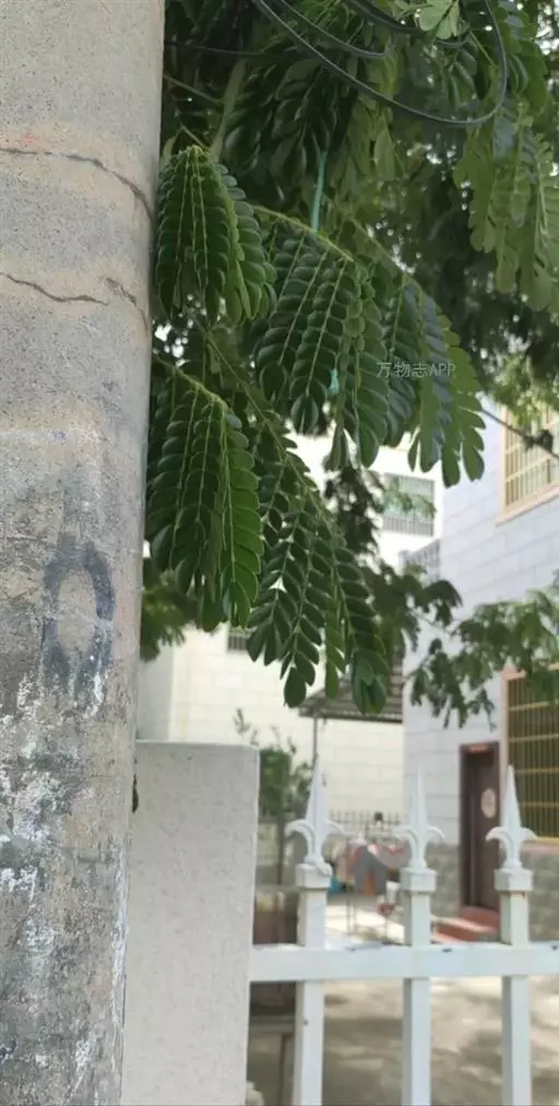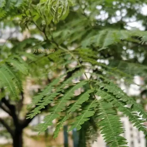 常绿大乔木,树干通直,高可达45m;嫩枝圆柱状或微有棱,被柔毛。托叶锥形,早落。羽片6-20对,上部的通常对生,下部的有时互生;总叶柄基部及叶轴中部以上羽片着生处有腺体;小叶6-26对,无柄,菱状长圆形,长1-1.5cm,宽3-6mm,先端急尖,基部圆钝或近截形;中脉偏于上边缘。