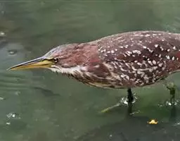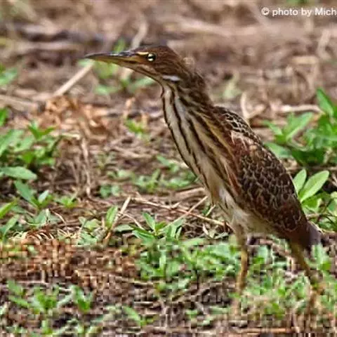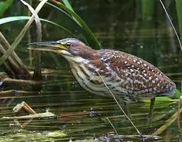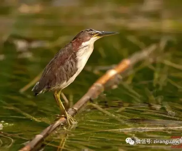 紫背苇鳽(学名:Ixobrychus eurhythmus)为涉禽,体长约33厘米。头顶黑色,后头至尾上覆羽暗栗褐色;翅上覆羽橄榄黄色;下体浅棕黄色。多生活于水库和山脚边的稻田、芦苇丛、滩涂及沼泽草地,在西藏见于海拔2300米的农田,营巢于草丛或苇丛中。食物种类为鱼、虾,育雏中、后期食物种类除鱼、虾之外,还有较多的蛙、蝌蚪、泥鳅及其他水生昆虫。分布于亚洲东部,包括马来西亚、巽他群岛、菲律宾、台湾及中国大陆的东北、华北、浙江、长江流域、福建、四川、西藏、云南、华南及海南等地。