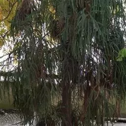 水松 乔木,高8-10米,稀高达25米,生于湿生环境者,树干基部膨大成柱槽状,并且有伸出土面或水面的吸收根,柱槽高达70余厘米,干基直径达60-120,厘米,树干有扭纹;树皮褐色或灰白色而带褐色,纵裂成不规则的长条片;枝条稀疏,大枝近平展,上部枝条斜伸;短枝从二年生枝的顶芽或多年生枝的腋芽伸出,长8-18厘米,冬季脱落;主枝则从多年生及二年生的顶芽伸出,冬季不脱落。