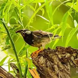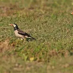 黑冠椋鸟:中等体型的椋鸟,体长21厘米。雄鸟前头为黑色并具金属光泽;头顶、颈项和羽冠亦为黑色;翅及翅上覆羽黑色;尾羽褐色,具白色端斑;上体灰色;下体淡黄褐色。雌鸟形态与雄鸟相似,但羽冠较雄鸟为短。虹膜蓝白或乳黄色;嘴峰铅绿色;跗蹠及爪柠檬黄色。头具黑色羽冠,与其他椋鸟易于区别。主要栖息于开阔落叶阔叶林和灌木林中以及多营巢于树洞中或其他洞穴内。属群鸟共栖。常4-8只结小群活动。鸣声清脆响亮。食物有果实和浆果,偶食花蜜和小型昆虫。分布于印度、中国云南耿马。常见于印度城镇、村庄及铁路沿线。偶见于中国云南西南部和西藏东南部。