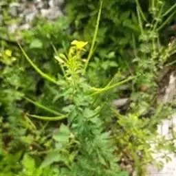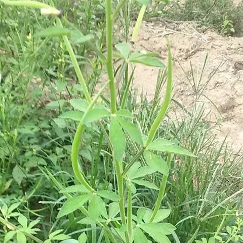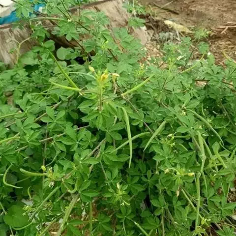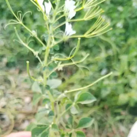 一年生草本。茎直立、开展或平卧,分枝疏散,高达90厘米,无刺,茎、叶柄及叶背脉上疏被无腺疏长柔毛,有时近无毛。叶具3小叶,叶柄长2-20毫米(茎下部的叶未见);小叶椭圆状披针形,有时近斜方状椭圆形,顶端急尖或渐尖、钝形或圆形,基部渐狭或楔形,几无小叶柄,边缘有具纤毛的细齿,中央小叶最大,长1-2.5厘米宽5-12毫米,侧生小叶较小,两侧不对称。花单生于茎上部叶具短柄叶片较小的叶腋内,常2-3花连接着生在2-3节上形成开展有叶而间断的花序;花梗纤细,长1.2-2厘米,果时长约3厘米;萼片4,绿色,分离,狭披针形,顶端尾状渐尖,长约4毫米,背部被短柔毛,边缘有纤毛;花瓣4,新鲜标本上2个中央花瓣中部有黄色横带, 2个侧生花瓣颜色一样,顶端急尖或钝形,有小凸尖头,基部渐狭延成短爪,长约6毫米,宽约2毫米,近倒披针状椭圆形,全缘,两面无毛;花盘不明显,花托长约1毫米,雄蕊6,花丝长5-7毫米,花药长1.5-2毫米;雌蕊柄长1.5-2毫米,果时长4-6毫米;子房线柱形,长5-13毫米,无毛,有些花中子房不育,长仅2-3毫米;花柱短而粗,柱头头状。果线柱形,表面平坦或微呈念珠状,两端变狭,顶端有喙,长3.5-6厘米,中部直径3.5-4.5毫米;果瓣质薄,有纵向近平行脉,常自两侧开裂。种子近圆形,直径1.5-1.8毫米,背部有20-30条横向脊状皱纹,皱纹上有细乳状突起,爪开张,彼此不相联,爪的腹面边缘有一条白色假种皮带。花果期6-9月。 (图片源 )