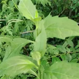 多年生草本,高50-100厘米,有时达150厘米。茎粗壮,直立,多分枝,基部径8-10毫米,圆柱形,中空,幼枝有沟或多角形,被密糙毛或柔毛,老枝除有疣状突起外,几无毛,节间长1-5厘米。叶卵圆形,长卵圆形,或长椭圆形,长1.5-6.5厘米,宽0.5-2.5厘米,顶端钝或圆形,基部等宽或稍狭,有圆形或戟形的小耳,抱茎,全缘,有时具稀疏而不规则的短齿,质厚,几肉质,两面被短糙毛,后有时无毛;中脉和侧脉纤细,在下面稍高起。