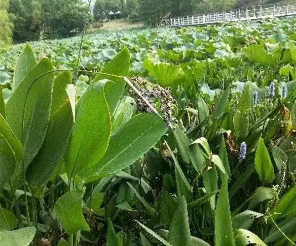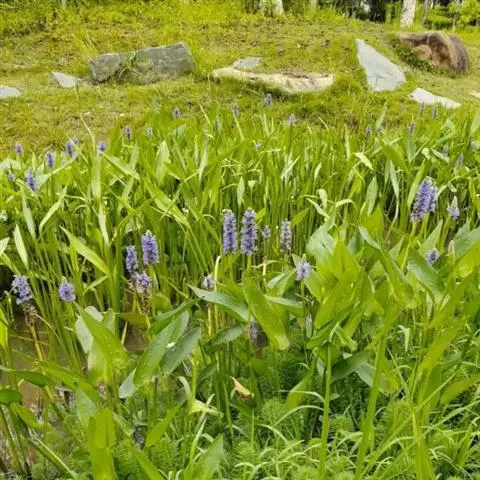 梭鱼草可用于家庭盆栽、池栽,也可广泛用于园林美化,栽植于河道两侧、池塘四周、人工湿地,与千屈菜、花叶芦竹、水葱、再力花等相间种植,具有观赏价值。