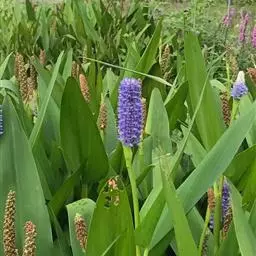 梭鱼草的生长习性为喜温暖湿润、光照充足的环境条件,常栽于浅水池或塘边,其叶色翠绿,花色迷人,花期较长,可用于家庭盆栽、池栽,也可广泛用于园林美化,栽植于河道两侧、池塘四周、人工湿地,与千屈菜、花叶芦竹、水葱、再力花等相间种植,每到花开时节,串串紫花在片片绿叶的映衬下,别有一番情趣。是一种较有前途的水生观赏植物。