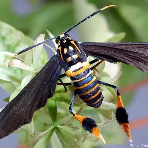成虫 翅展70mm。翅黄色。前翅有7条黑色横带,期中第1、第2、第4和第7条到达后缘,第3和第5条只到翅的中部。后翅后缘和中部各有1条黑带,外缘黑带镶有5个新月斑,期中靠前缘1个为黄色,其余4个为蓝色;臀角有1个黑色蓝心的三角斑及黄色横斑。前翅反面第4条基半部镶有黄色条纹,第6条分裂为2条黑色条纹;后翅反面中部黑带的中间夹有1条橙色细线。雄性外生殖器的上钩突缺;爪形突叶状,膜质;抱器瓣三角形,末端有1个长刺突;内突宽叶状;阳茎端基环“Y”形;阳茎长而弯曲,基部宽而呈梯形,端部细长而尖。雌性外生殖器的产卵瓣半圆形,交配孔宽大;囊导管短宽,几乎与交配囊等宽,交配囊颈稍窄;交配囊长,无囊突。