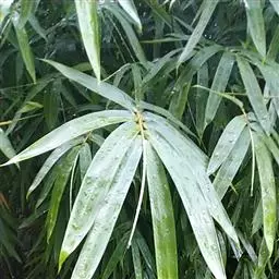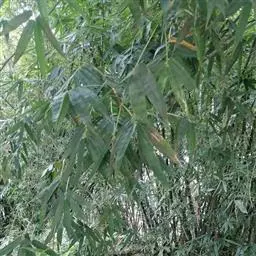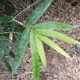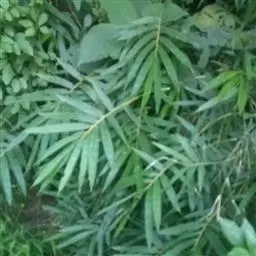 凤尾竹 Raeusch. ex Schult. ’Fernleaf’ R. A. Young)是禾本科,簕竹属孝顺竹的变种。植株较高大,杆高可达6米,竿中空,小枝稍下弯,下部挺直,绿色;竿壁稍薄;节处稍隆起,无毛;叶鞘无毛,纵肋稍隆起,背部具脊;叶耳肾形,边缘具波曲状细长繸毛;叶舌圆拱形,叶片线形,上表面无毛,下表面粉绿而密被短柔毛,小穗含小花,中间小花为两性;外稃两侧稍不对称,长圆状披针形,先端急尖;内稃线形,脊上被短纤毛,花药紫色,子房卵球形,羽毛状。成熟颖果未见。原产中国,华东、华南、西南以至台湾、香港均有栽培。凤尾竹喜温暖、湿润和阳光充足的环境,耐寒。宜土层深厚、肥沃、疏松的微酸性壤土。该种观赏价值较高,宜作庭院丛栽,也可作盆景植物。全草或根入药,味淡、微苦,性寒,有清热利湿、凉血止血、消肿解毒功效,可治痢疾、泄泻等多种病症。凤尾